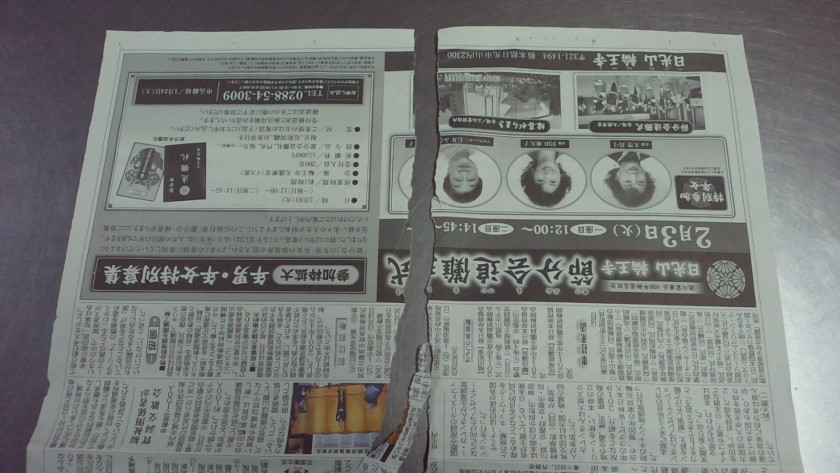 本日は久々に真剣の切れ味を試したく、新聞紙斬りを行ないました。
